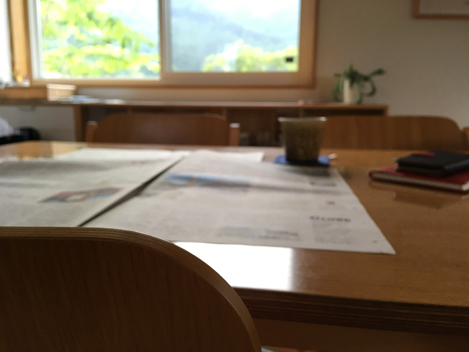 朝食前にここに座り、新聞をひらくこの時間が、一日で一番のお気に入り。
