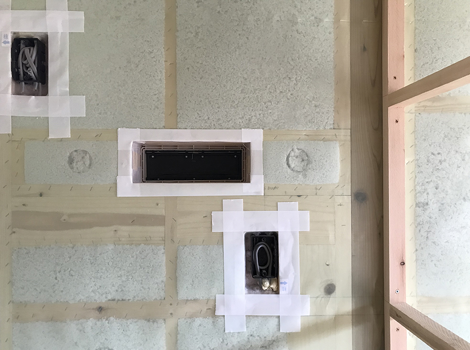 ↓こちらはコンセント廻りの気密処理です。