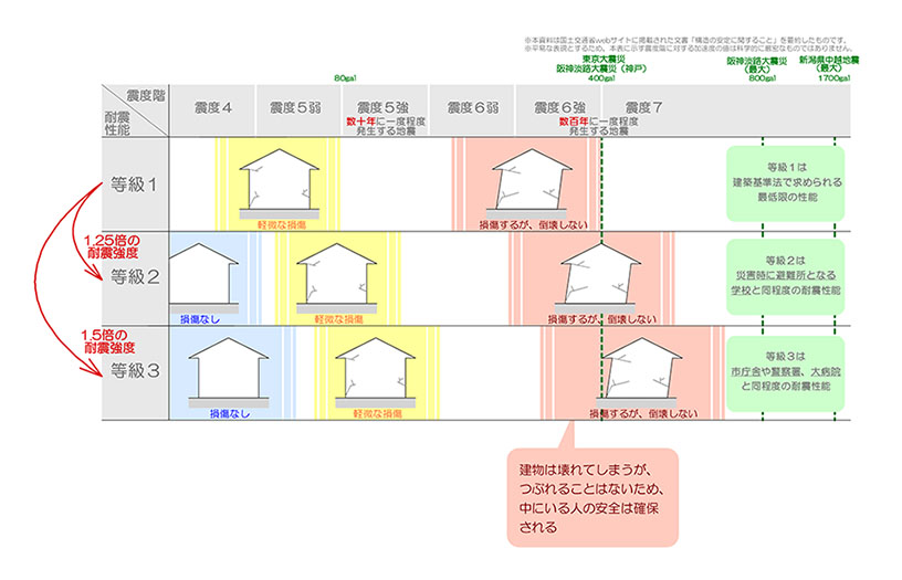 等級1は建築基準法で定められた耐震強度の最低基準であり、