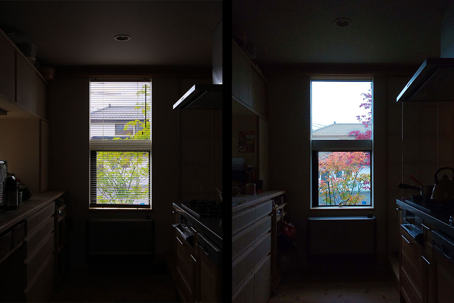上の写真は、花や新緑、紅葉が見える窓。