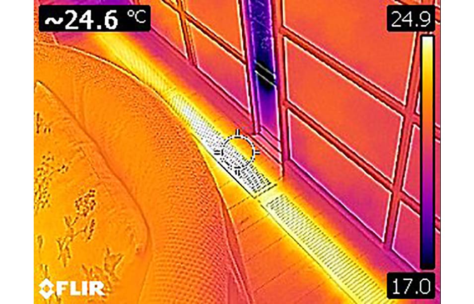※上の画像は、窓際の温風のサーモグラフィ画像です。