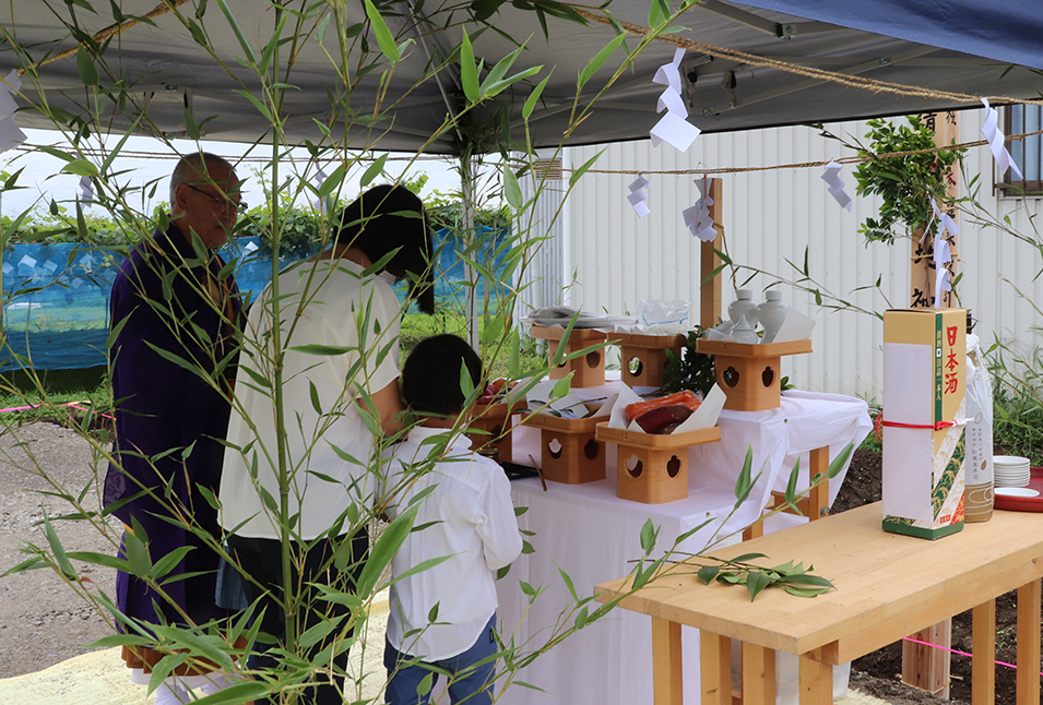 小雨の降る朝、地鎮祭が取り行われました。