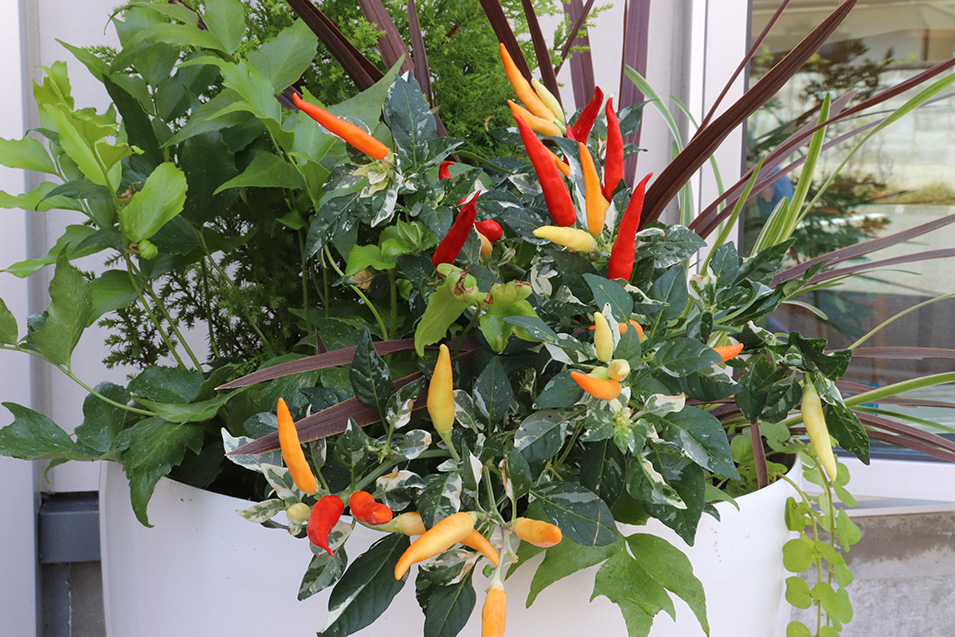 とかく、花をつける植物は暑さに弱い気がするので、今回は葉物で寄せ植え。