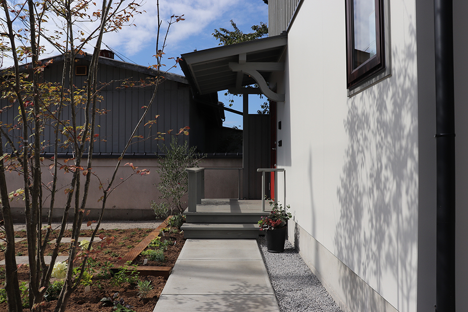 そんな道でもあります。小道の脇には、緑を添えて陰影などつくアプローチになれば、表情がでて尚の事良しです。