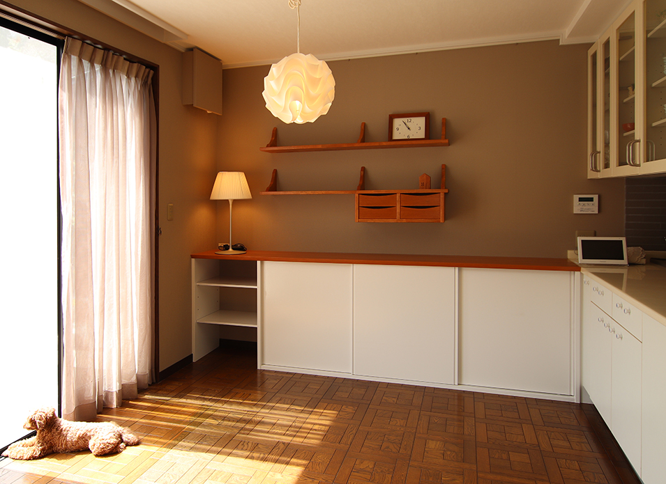 収納のご相談と造作家具のご相談がございました。手持ちの家具に添うよう、北欧調のインテリアをご提案。