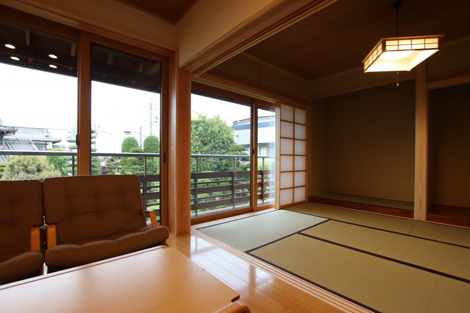 床の間と仏壇のある和室のふすまを開け放すと、居間と一つの空間になります。