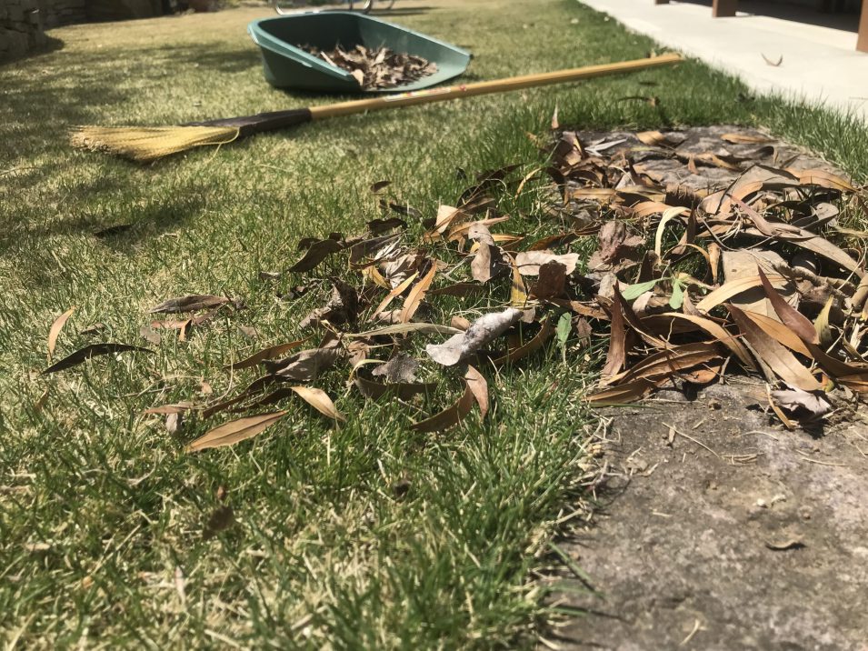 秋に落ちた枯葉などを、きれいに掃き出し、小さな草も見逃さずに取りましょう。