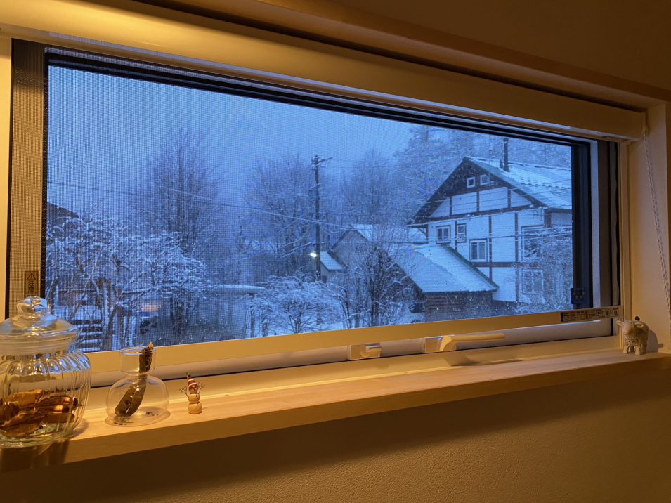 「大屋根のおかげで、ジムニーは雪に埋もれず。ペレットストーブのおかげで暖かく過ごしています。」
