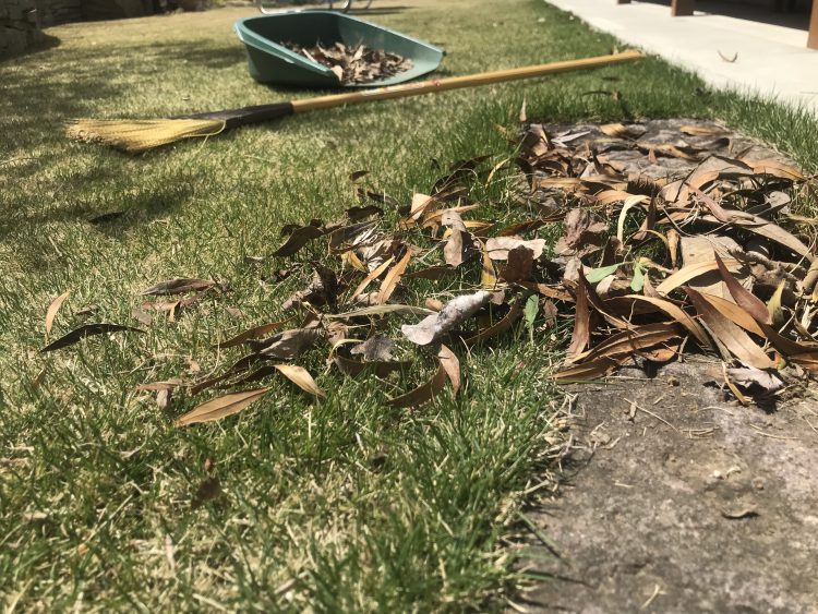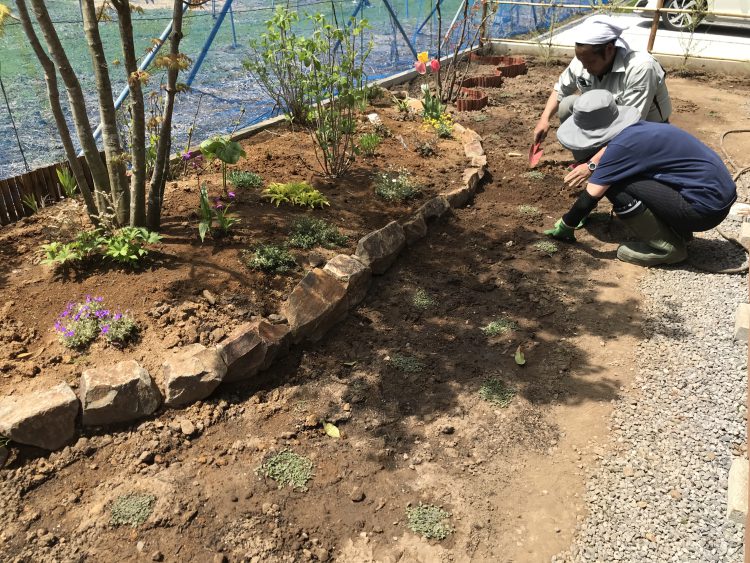春、桜の咲いた頃に行なう、芝生の手入れです。