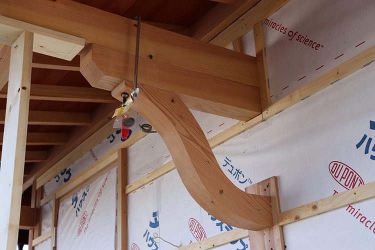湯本建築設計がつくる家の玄関には、大切なシンボルがあります。玄関の深い軒を支える腕木。担当…