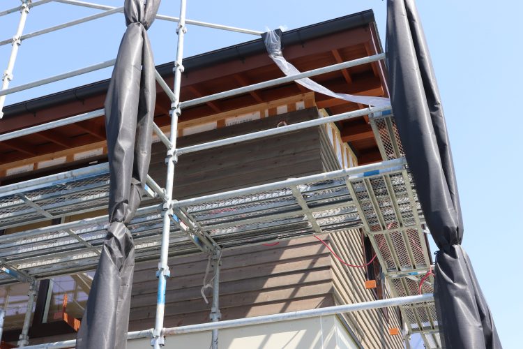 長野市のお住い、只今、外壁の板張りを施工中です。