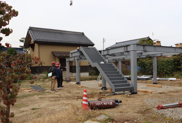 本日、長野市で3階建てのお住いの建て方(1階鉄骨部分)が完了しました。