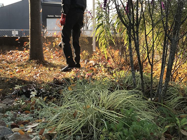花壇が、落ち葉いっぱいに。…