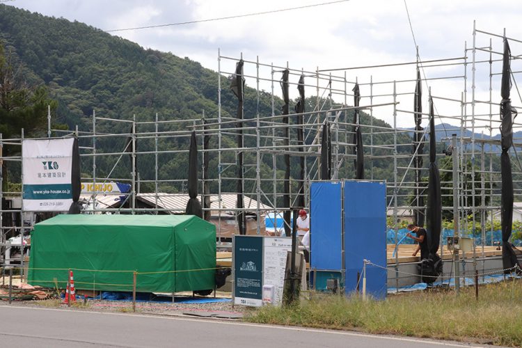 葡萄畑と妙覚山が風景となる須坂市の現場、いよいよ藤木棟梁が入ります。