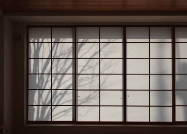 そよぐ枝の影が映る障子。