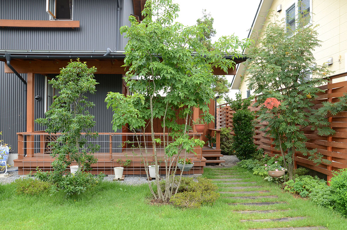 リタイア後も庭の手入れや地域の集い等忙しくも充実した日々を送られているそうで、自慢の庭は入居後ご主人がせっせと芝をはり育てた力作。