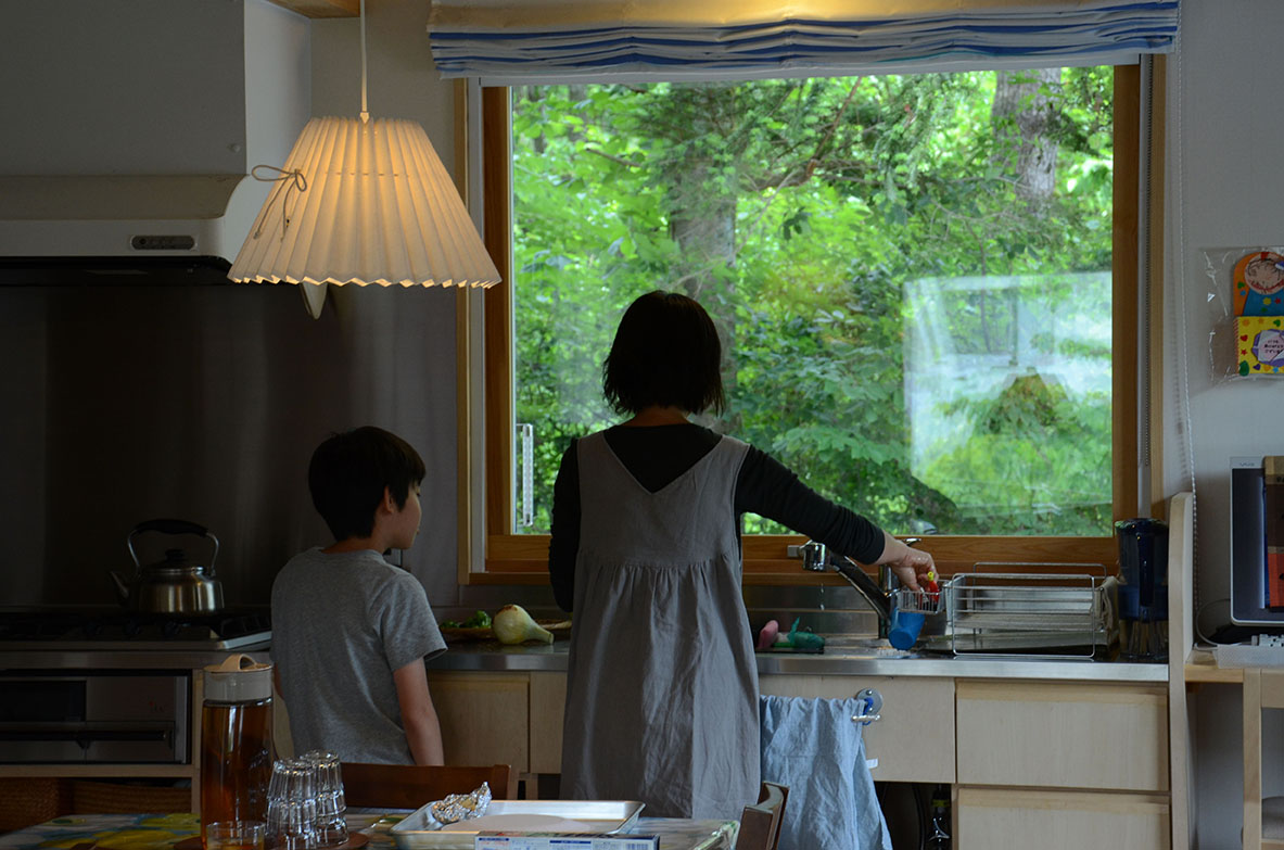 住み心地を伺うと、「御代田の冬はとっても厳しいけれど、この家は本当に暖かくて快適。夏もクーラなんて全然いらない。暑い外から一歩家のなかに入ると、帰るとほっとするのよ」と奥さま。