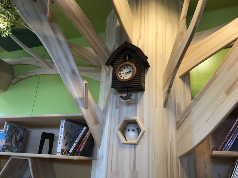 森の時を見つめてくれる番人がいる、大らかな森の絵本コーナーを描いた。