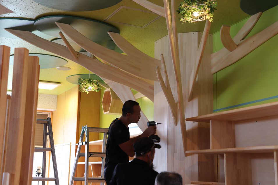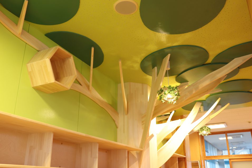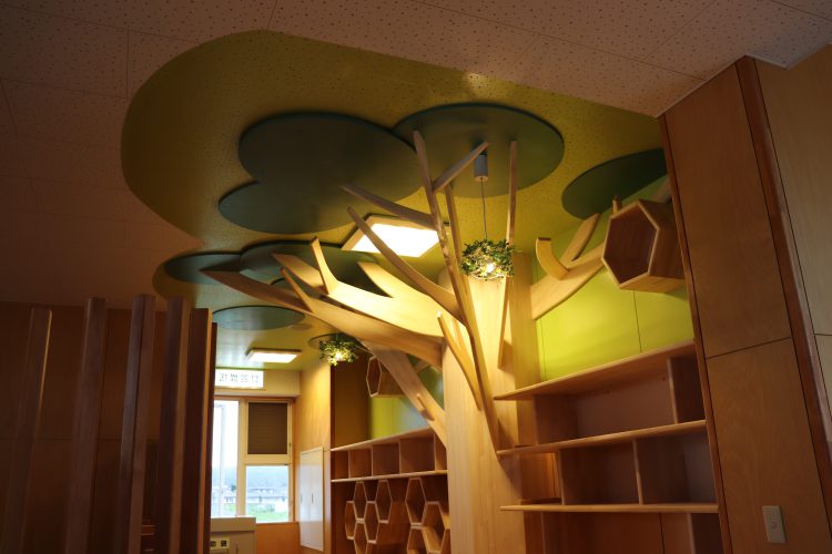 当社で設計を担当したフラワー棟(2005年)に、絵本コーナーを設置する工事を行った。