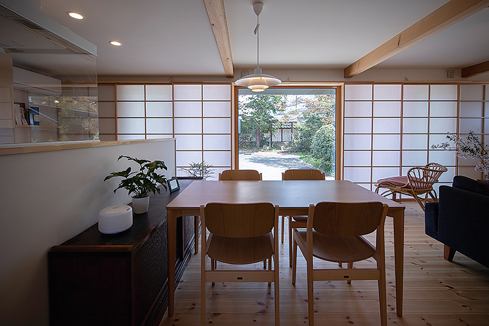 敷地内の母屋を尊重する配置計画とし、自然と調和する住まいが出来上がりました。