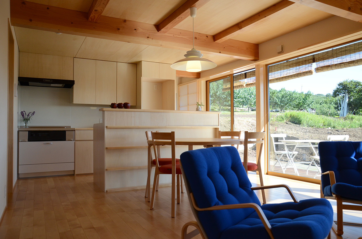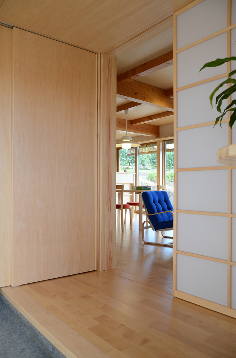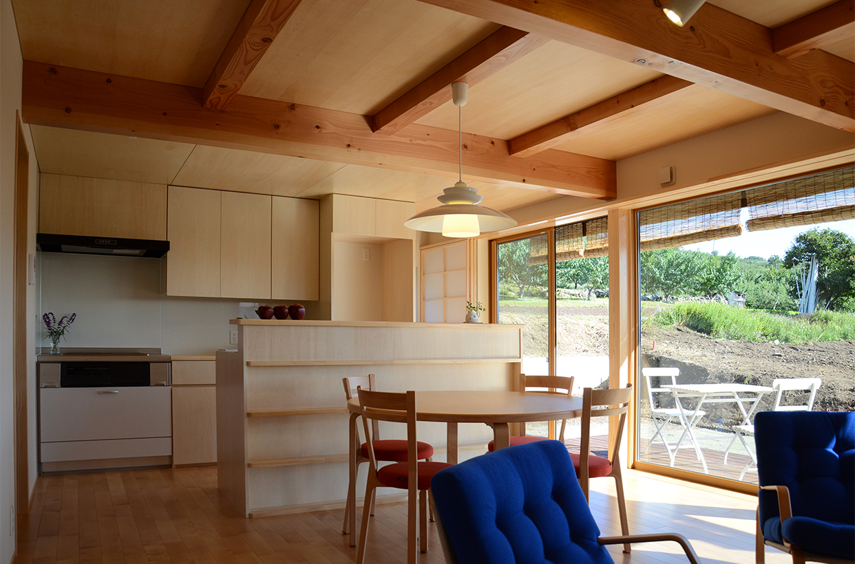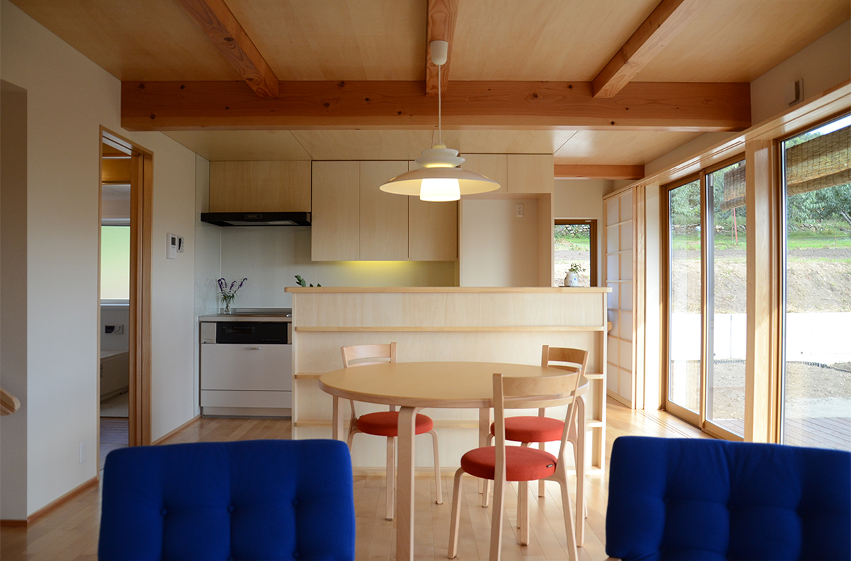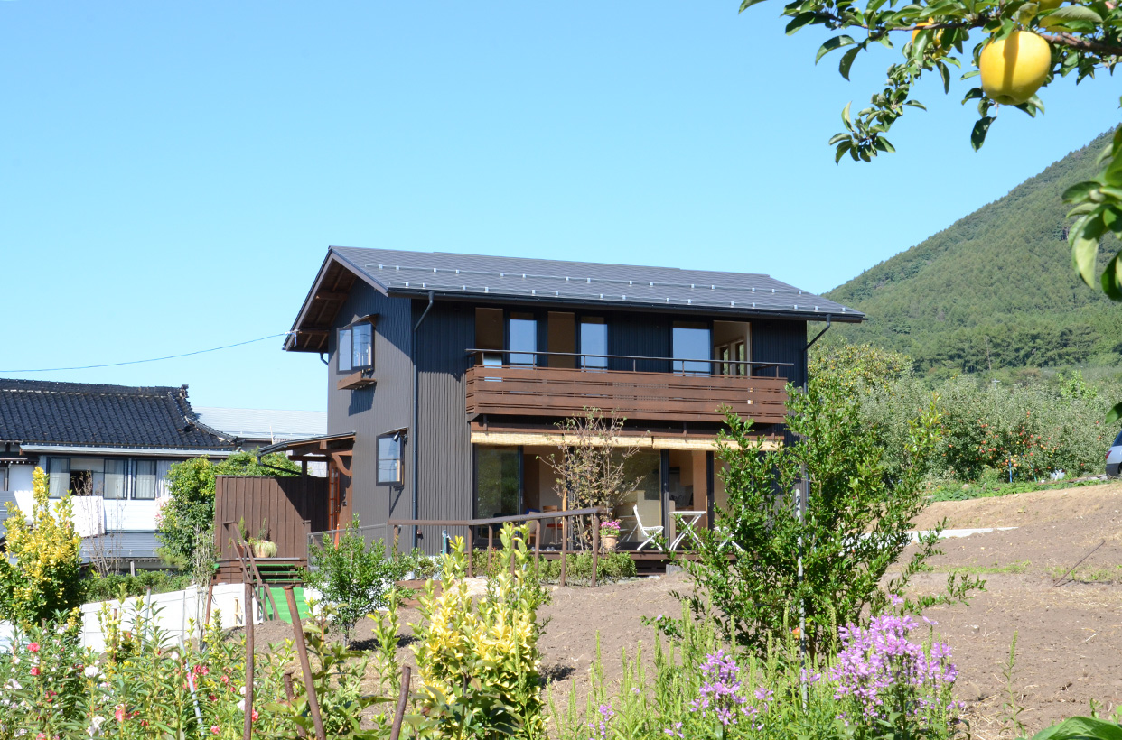 高社山の麓に建つ、コンセプトハウス誠の家。家のどこにいても自然を感じ、家族を感じることができ、山里ののどかな営みを写すピクチャーウインドウは、眺めるているだけで時間を忘れるよう。喧噪からはなれた、静かで落ち着いた環境によく合う佇まいになった。