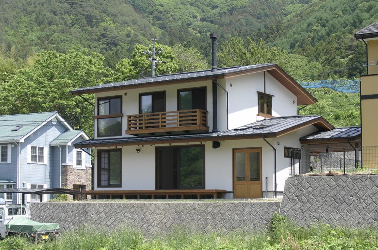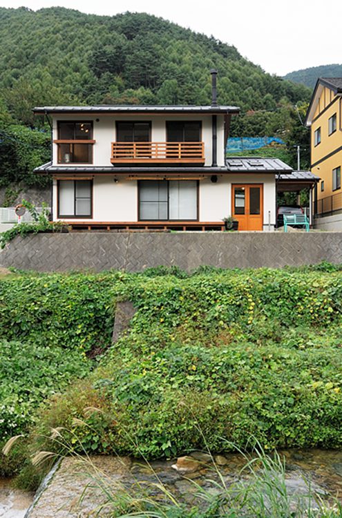 山々に囲まれ川のせせらぎが聞こえる長閑な環境に建つ。