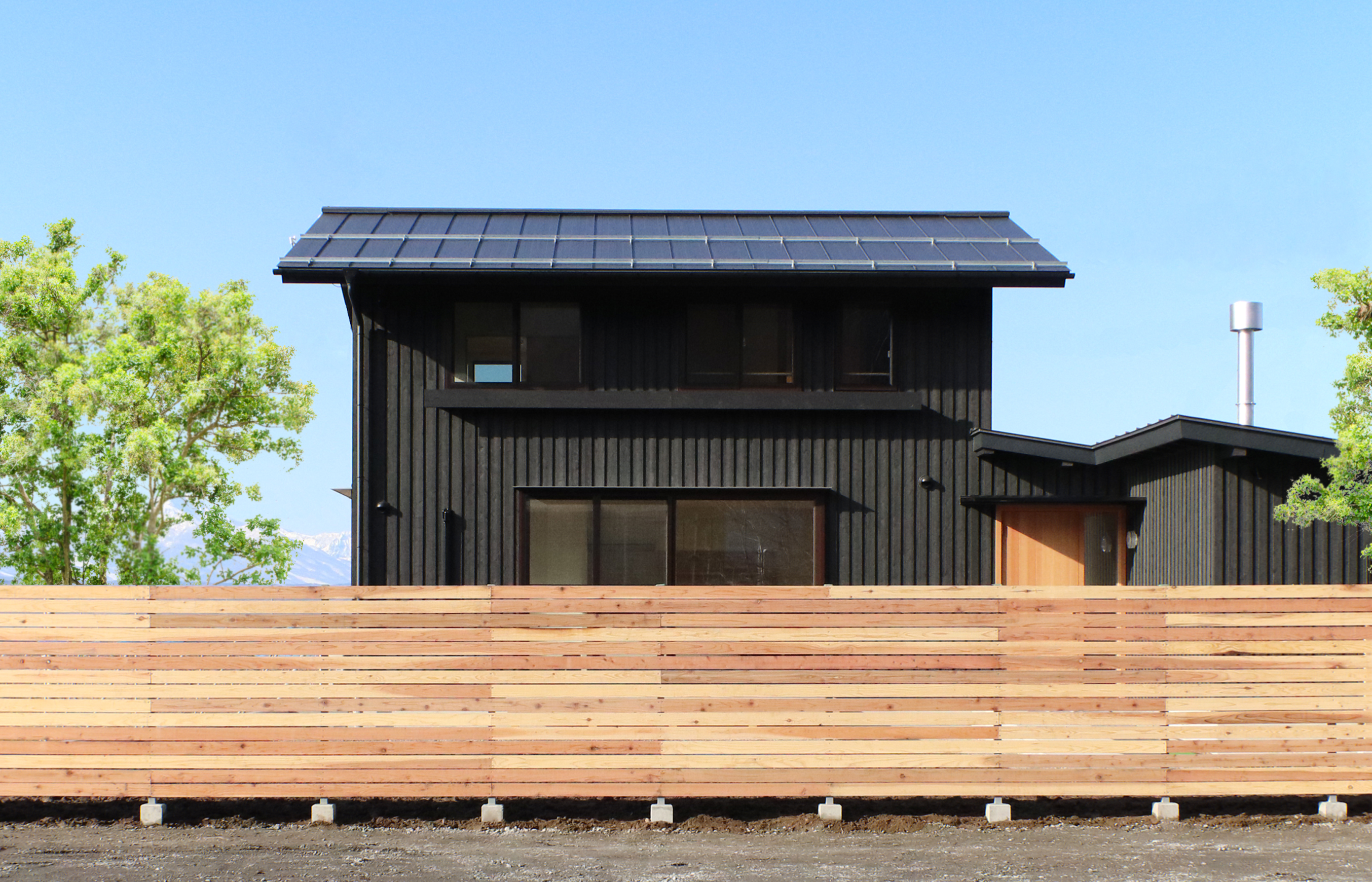 外壁は、調色してつくり出した黒の杉板大和張り。