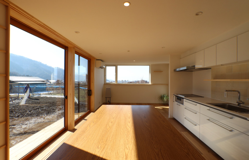 二階からはどの窓からもブドウ畑やリンゴ畑、そして北信五岳が借景となります。