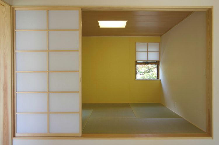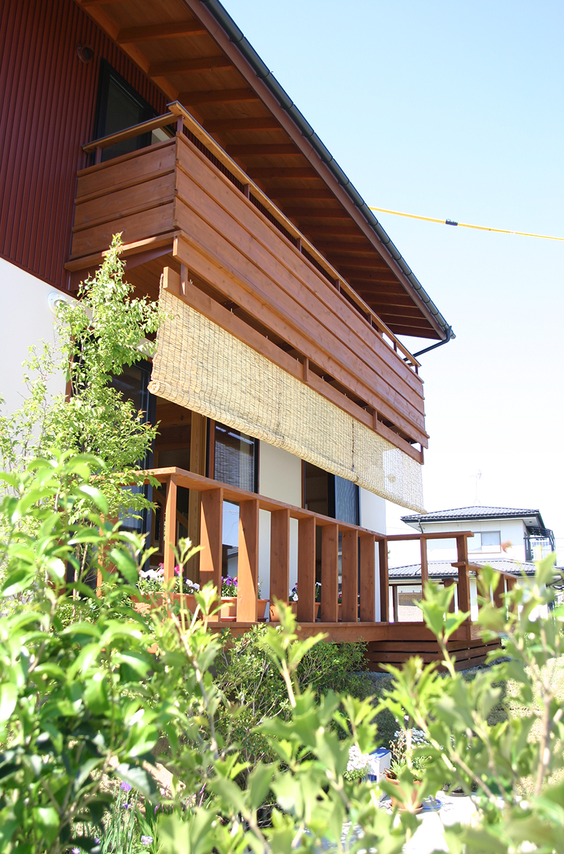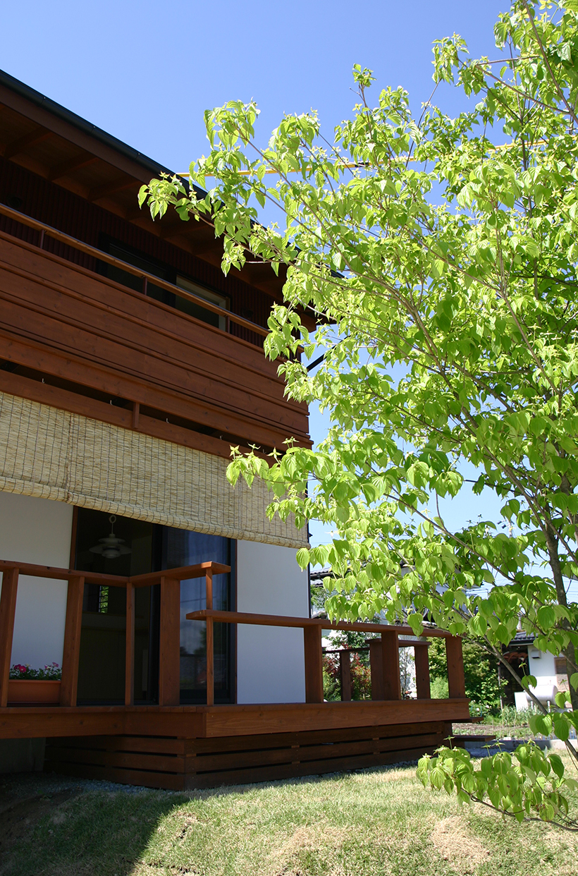 家族のくつろぐ1階と、個々の時間を過ごす2階とを効果的に結びつけ、家族の交流を自然と生み出す。リビングの脇に小上がりの和室がつながり、この窓からは手入れの行き届いた隣庭を借景として頂くことができる。