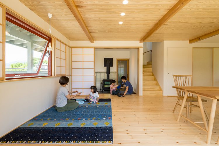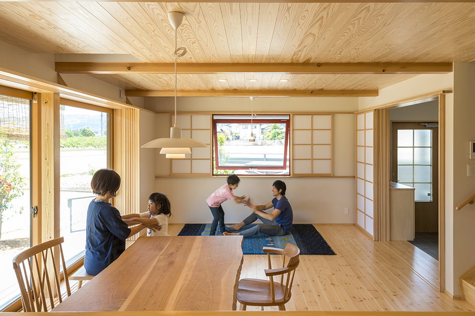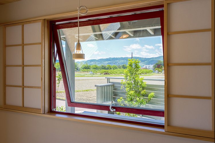 四季のごちそうが、リビングの大窓に広がります。東西の窓からは、田園と山並みが見渡せます。