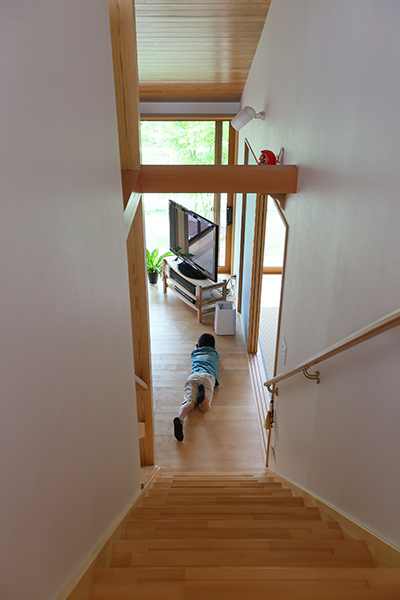 ダイニングリビングを1階の大窓とともに一つにまとめたすまい。